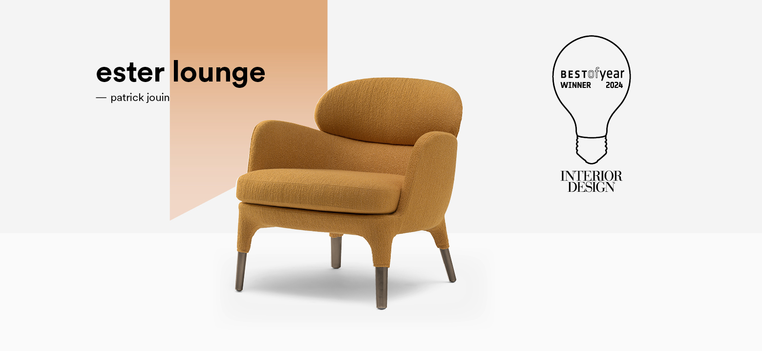 Ester Lounge, le fauteuil lounge Pedrali conçu par Patrick Jouin, remporte le Best of Year en tant que meilleur fauteuil lounge contract de l'année. Promu par le magazine américain Interior Design et arrivé à sa 19ème édition, le prix Best of Year est l'une des reconnaissances les plus importantes du secteur du design au niveau mondial.